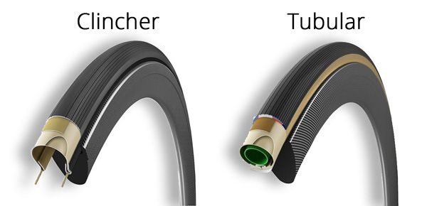 With tubular tyres, the tubes are sewn directly into the outer casing, and provide a higher quality riding experience. They are also preferable to clincher tyres due to their lighter weight. Tubeless tyres are another option. While they are somewhat weightier than tyres with tubes, they are more resistant to flats. So while you might be at a minor speed disadvantage in a race with tubeless tyres, you run less of a risk of have the delay of having to stop and fix a flat.